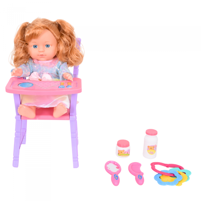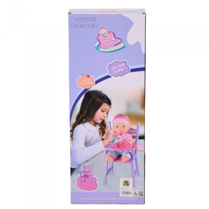 لحظات اللعب تصبح أكثر متعة مع دمية جميلة تأتي مع كرسي طعام أنيق وإكسسوارات كاملة تجعل تجربة العناية والتربية واقعية ومسلية. سيستمتع الأطفال بإطعام الدمية والاعتناء بها وكأنها جزء من عائلتهم الصغيرة، مما ينمّي مشاعر المسؤولية والحنان لديهم.